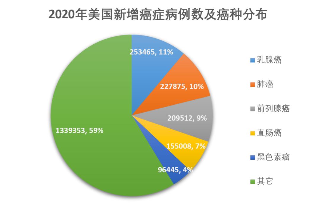 国际癌症研究机构IARC的数据显示,在2020年美国新增癌症患者中,患者数目最多的前三大癌肿是乳腺癌、肺癌和前列腺癌。鼻咽癌(Nasopharynx)患者新增1898人,仅占总新增病例的0.08%[7]。