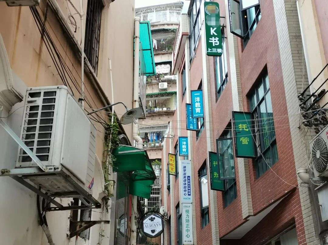 付费自习室在一条巷子里边,这里一栋楼都是托管和培训机构。