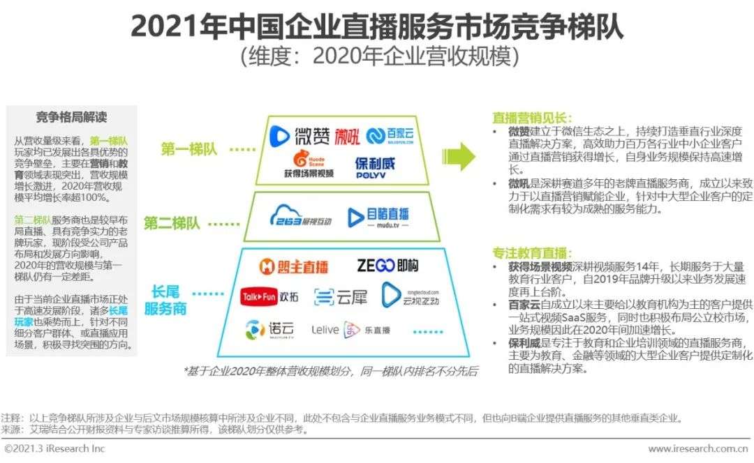 中国企业直播服务商梯队