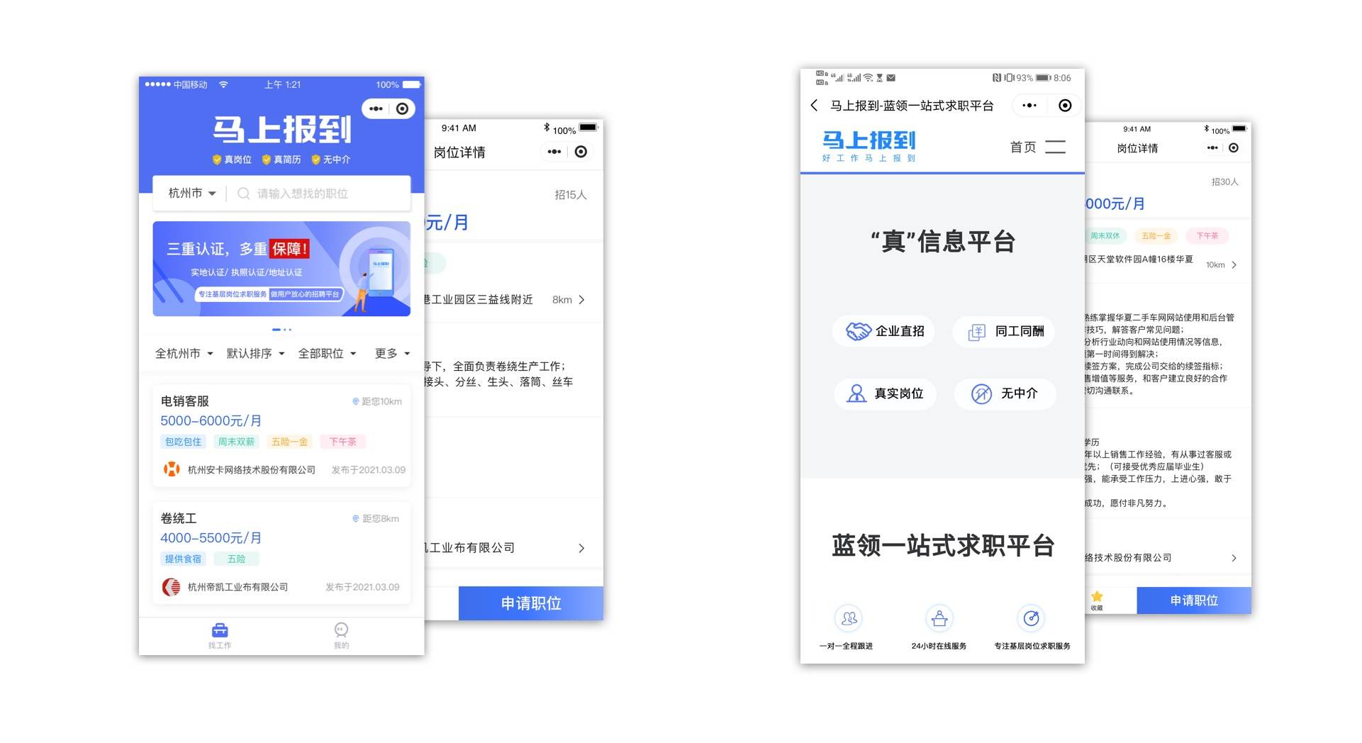 创始人杨宇智告诉36氪,蓝领用户和用人单位存在信息不对称的问题,网络平台上的蓝领招聘信息往往是中介和劳务公司发的,常夸大用工待遇,双方信息不透明是行业痛点,同时中介和劳务公司也比蓝领用工企业更熟悉网络运营,企业直招的岗位曝光不足也导致企业招人更难。在马上报到,岗位JD是平台和用人单位一起商讨之后发放的,着装、噪音、温度以及相应保护措施等细节问题会列举出来,让求职者面试之前就了解到这些详细信息,这样可以减少入职之后的员工流失率。在交付方面,马上报到给用人单位一般是以入职3天或七天为标准计算合格交付的。