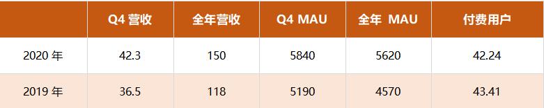 营收数据单位:万元;用户数量单位:万