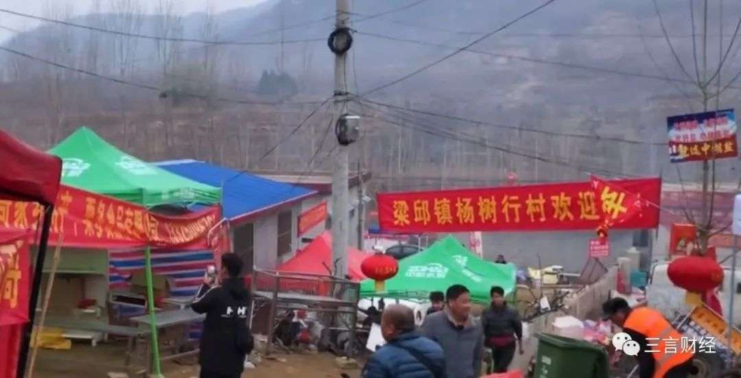 村里的人也开始忙碌起来,为了欢迎各地来的人,村里拉起了不少“欢迎”的条幅,还免费提供水和吃的,供主播们免费食用。