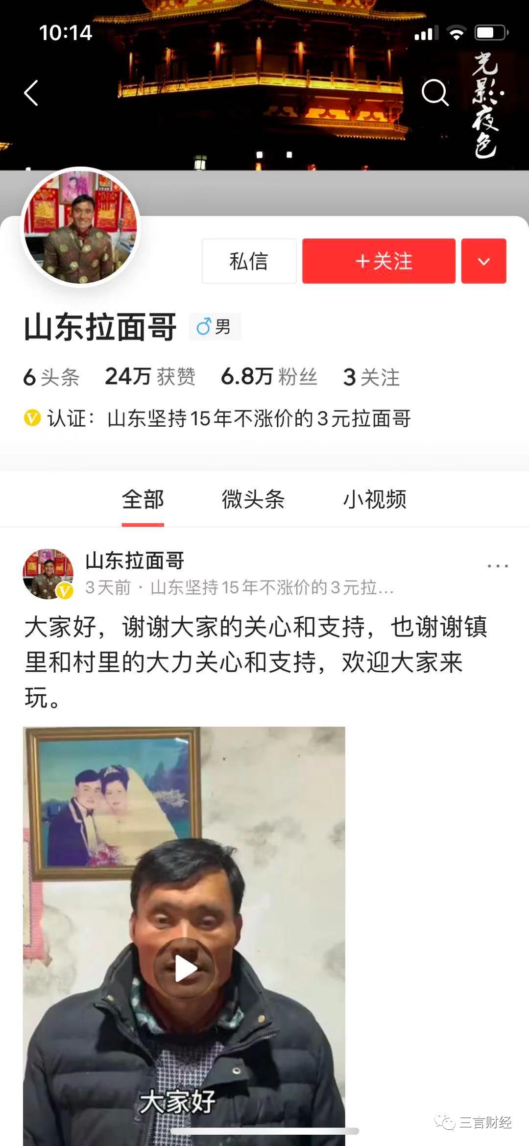 成名后,拉面哥在今日头条、抖音和快手上都开设了账号,感谢大家的支持,并希望大家能到山东做客。