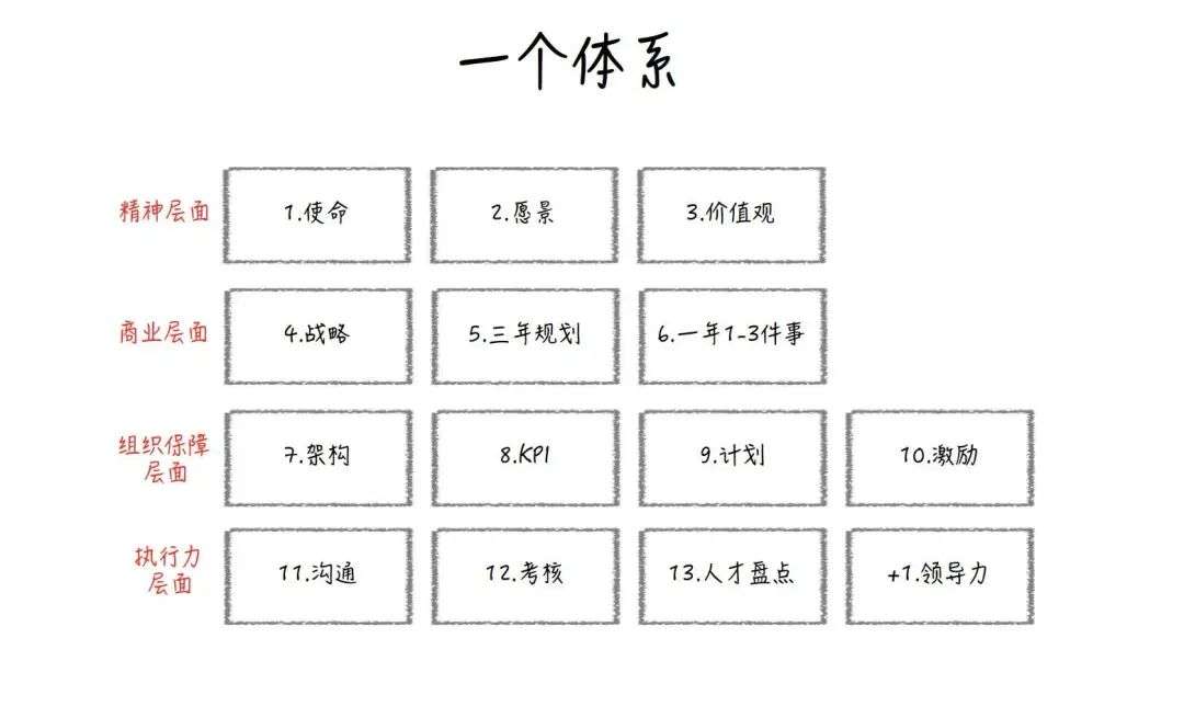这些就是黄旭老师总结的“13+1”体系,它们是管理中最核心、最重要的东西。