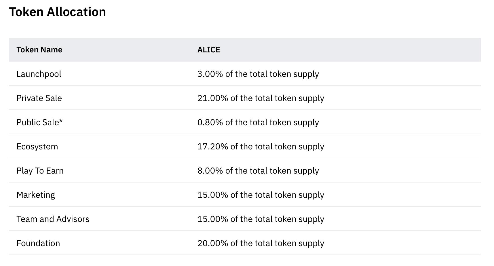 根据白皮书,ALICE的总量恒定为1亿枚,其功能包括: