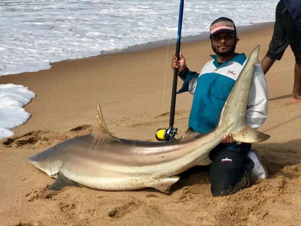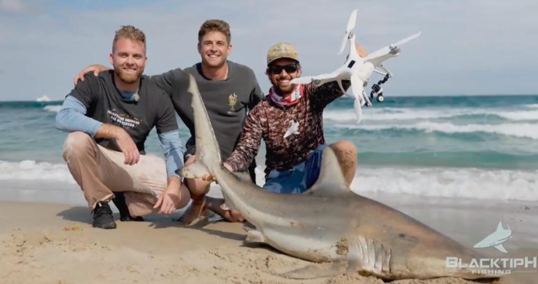 而大赛冠军拉朱,在比赛当天就用无人机钓起了一条重达95.4公斤的黑鳍鲨。