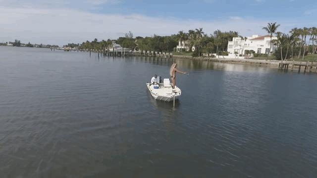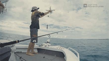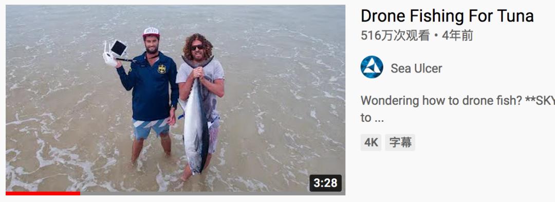 也是因为有了无人机,无数垂钓者成了油管上的网红,其中最受欢迎的表演,就是无人机钓鲨鱼。