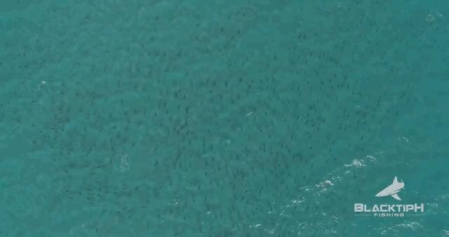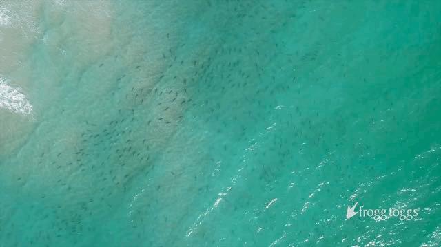 无人机拍下鲨群出没