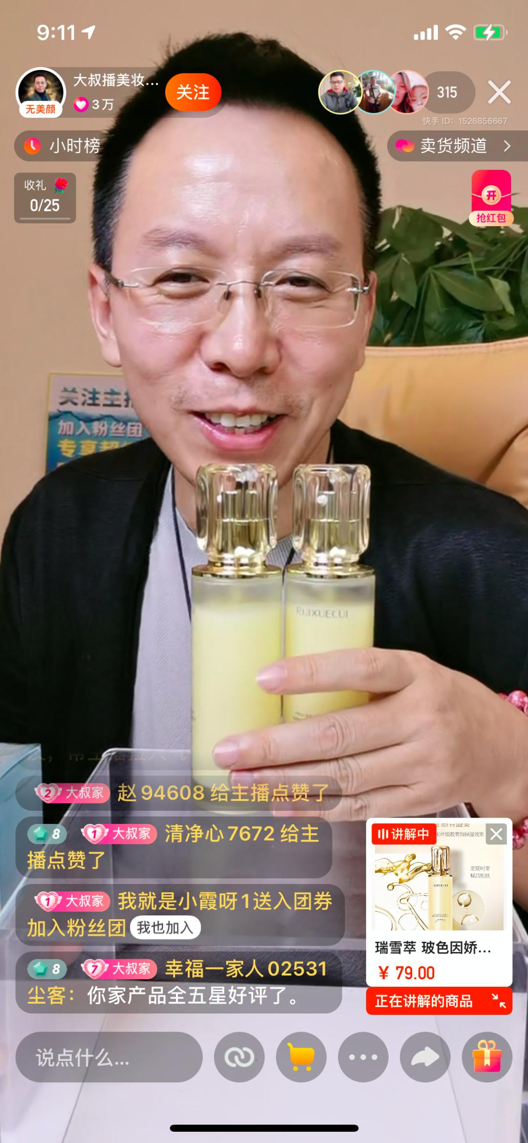 庞文强定位自己的品牌“瑞雪萃”是“快品牌”,意思是产品只在快手直播间销售。他认为,快手能够源头直接对着消费者,“其他平台本质还是中间有商家的”。