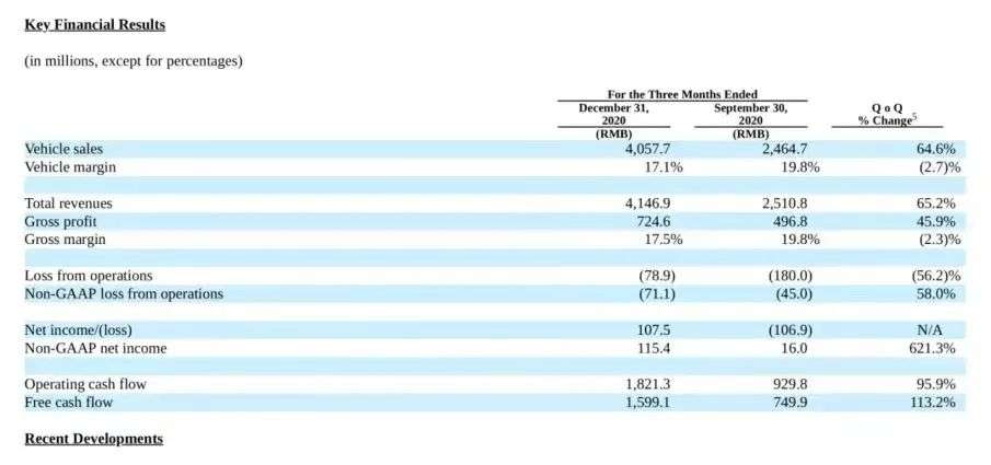 这份财报中,最亮眼的无疑是其实现了上市后首个单一季度的盈利,同时,这也是新造车三势力中率先实现季度性盈利的车企。但理想汽车在2020年度仍处于亏损状态,全年净亏损2320万美元(约合人民币1.517亿元),不过同比下降了93.8%。