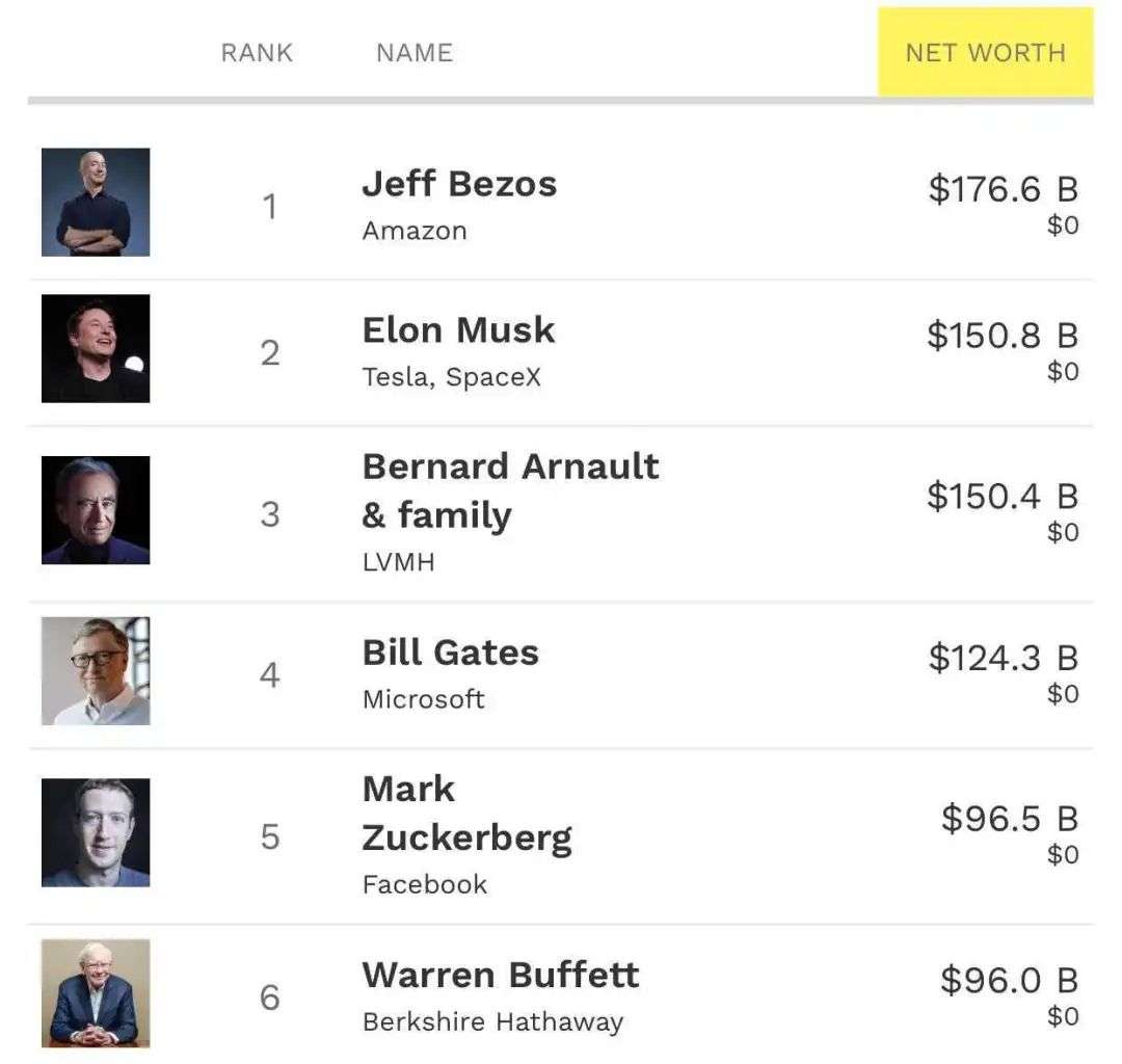 围观一下最新的世界富豪排名情况,按照比尔•盖茨的说法,能玩得起比特币的只有亚马逊的贝佐斯(Jeff Bezos)了。