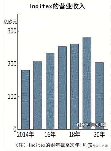 第3位的迅销旗下的优衣库的中国门店占整体的约2成。2020财年(截至2020年8月)的营业收入仅减少12%,约为2万亿日元(约合人民币1192亿元),服装业三强的营收差距正在缩小。