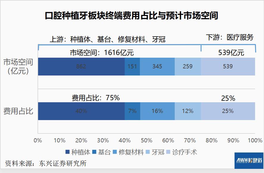 根据好大夫在线公布的价格单显示,在口腔科的几种分类上,“牙科暴利”的矛头主要指向种植、正畸。从种植牙的终端价格来看,75%的费用是用于支付种植体、基台等耗材,而耗材价格居高不下的一个重要原因是:国产化率低。