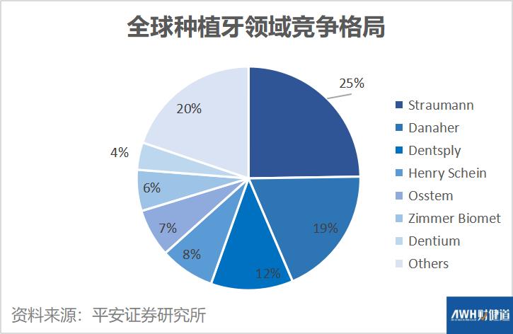 以种植牙为例,核心种植体被外资垄断。据Straumann统计,2018 年全球种植牙行业上游的种植体的市场格局中,前5位企业市场占有率为71%,其中Straumann市占率第一,高达 25%。