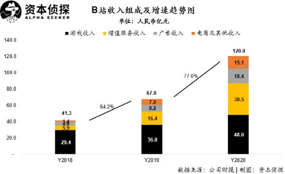 随着B站在内容生态方面的不断丰富,以及在用户数上的快速增长,公司在游戏之外的变现效率在快速提升,在过去一年同比增幅均超过100%,高于公司整体增速。