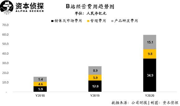而在亏损方面,尽管B站去年Non-GAAP下归属与股东净亏损仍然高达25.8亿元人民币,但这主要是由于公司在过去一年战略性投入巨额市场费,用于用户拉新所致。B站去年的销售及市场费用高达34.9亿元人民币,相比2019年增加了191.4%。