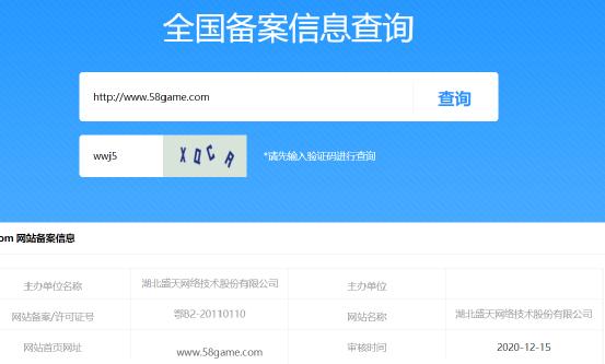 最后,预言家游报在网站备案信息查询的网站中搜索58game.com的域名,发现这个域名同样属于湖北盛天网络技术股份有限公司。