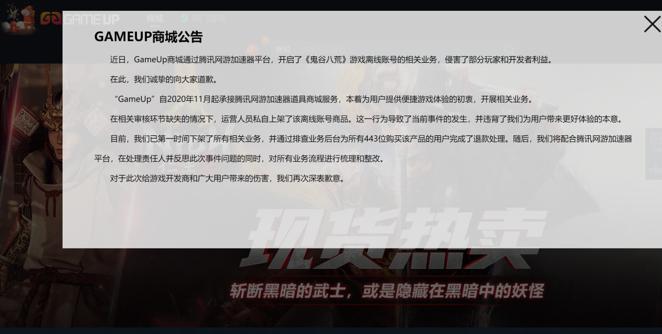 让我们把视线拉回“GameUp商城”身上。事发后,GAMEUP也迅速发布道歉声明,称“由于相关审核缺失导致运营人员私自上架该产品”。