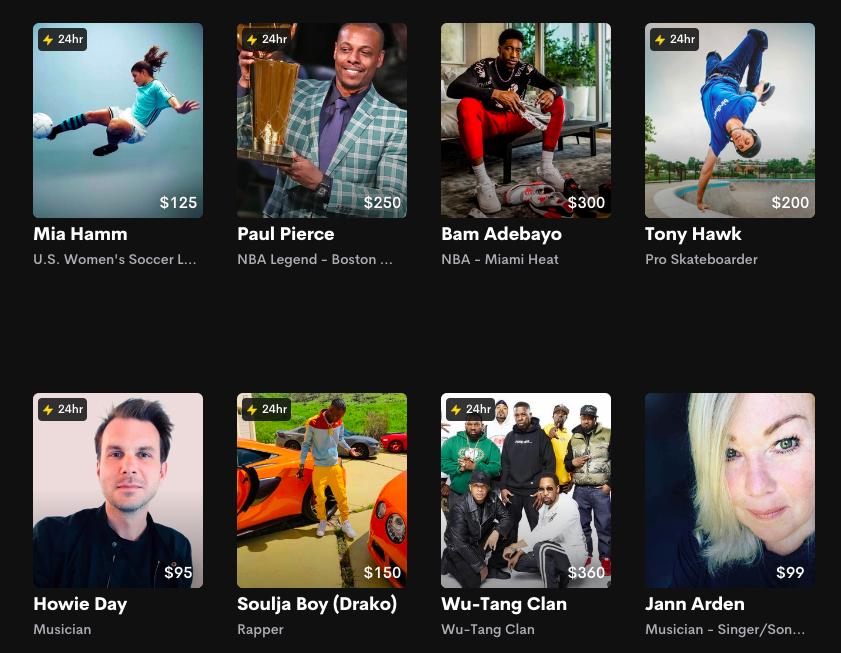 在国内其实是有相似的产品的,比如 WishR,一个最大的区别就是「贵」。打开 WishR,稍微有些名气的明星都要几万块人民币,相比之下 Cameo 实在许多,虽然名人标价从 10 美元-2500 美元不等,但是超过 1000 美元的名人只有个位数。