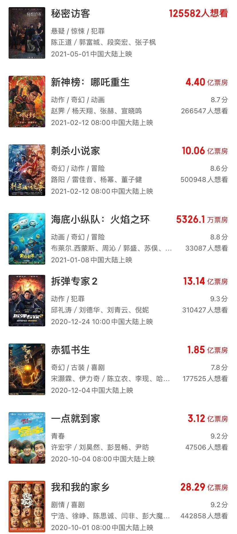 综艺和剧集之外,抖音也在越来越深地介入到电影投资创作的过程中。在《我和我的家乡》《一点就到家》《赤狐书生》《拆弹专家 2》后,抖音文化又在今年参与出品了《刺杀小说家》《新神榜:哪吒重生》《海底小纵队:火焰之环》以及已定档五一的《秘密访客》。