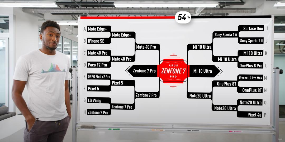 有些人可能觉得奇怪了,用户自己在家里琢磨的结果,能和专业测试机构出来的结果一样吗?有一说一,还真不一样。去年Marques Brownlee(或者说MKBHD)就曾发起过一个相机盲测的评比:在无标识的情况下让用户投票选出当年的「年度最佳拍照手机」。而当年由海量评选出来的「年度最佳」,并不是iPhone、三星或华为、小米的机型,而是DXOMARK得分115的华硕Zenfone 7 Pro。