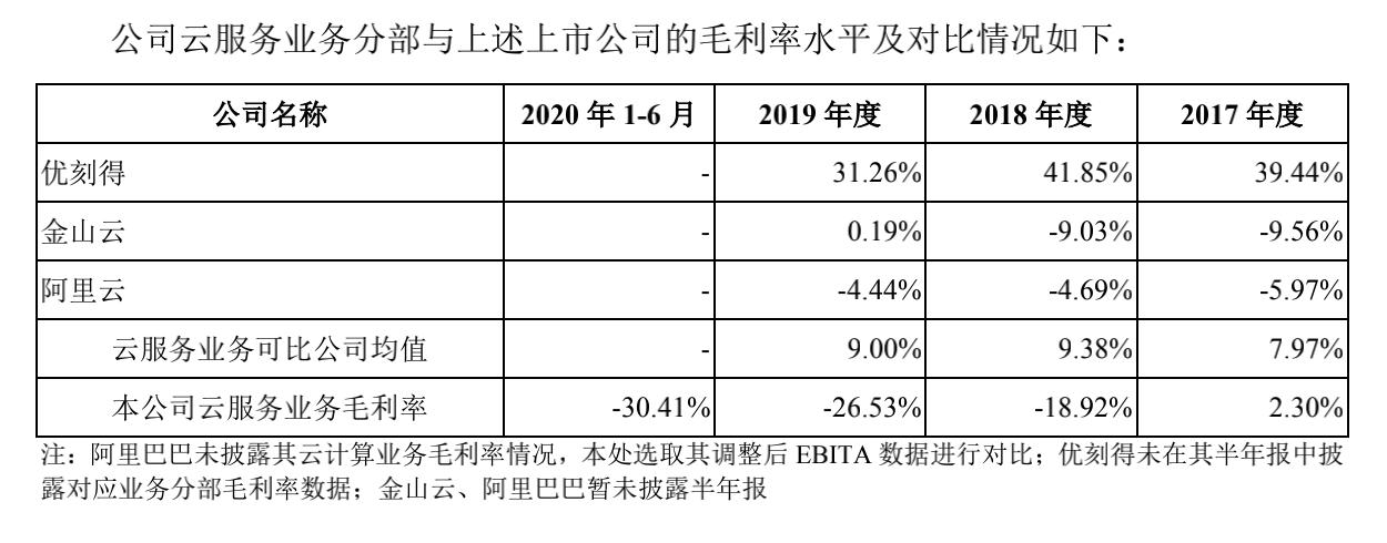 另外再看成本,报告期内云服务占青云科技的收入比重在40%左右,而成本占比却徘徊在60%左右。