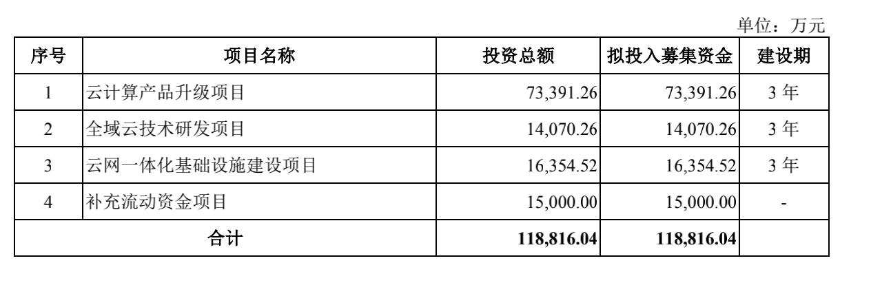 青云科技募集资金规模及运用计划 来源:青云科技招股书