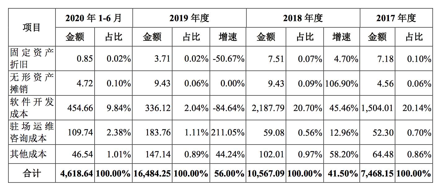 但要做私有云,随之而来的一个问题是客户要求高,定制化程度重,青云科技在之后需要付出的成本恐难以降低。例如,其成本表中有一个很有趣的指标,即驻场运维咨询成本,虽然占比不高,基本每年占成本比例在1%~3%之间,但每年增速都在提高。尤其是2019年度增速达到211.05%,在某种程度上表明了服务私有云客户对公司人力的要求。
