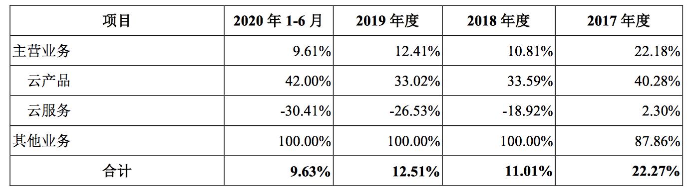 云产品毛利率同业对比 来源:青云科技招股书