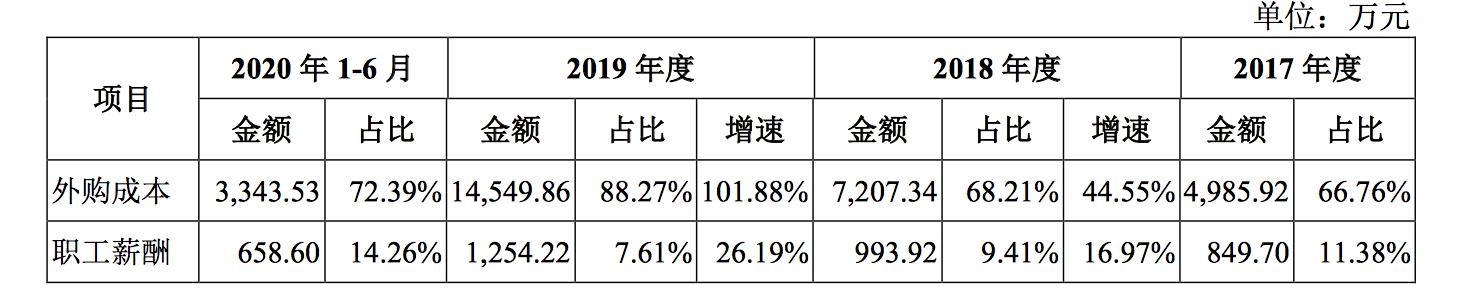 当然还要再提一句,云计算作为技术驱动产业,研发和员工薪酬也是企业支出的重头。青云科技在招股书中表示,2017年、2018年、2019年和2020年上半年,公司的研发费用分别占营业收入的比例为 12.82%、22.81%、18.45%及 25.34%,在行业内也属于较重的水平。另外在人员投入上,从2017年到2020年上半年,公司职工薪酬(包含股份支付)分别占当期营收的50.84%、50.51%、50.87%及 51.91%,这也侧面影响了青云科技的收入情况。