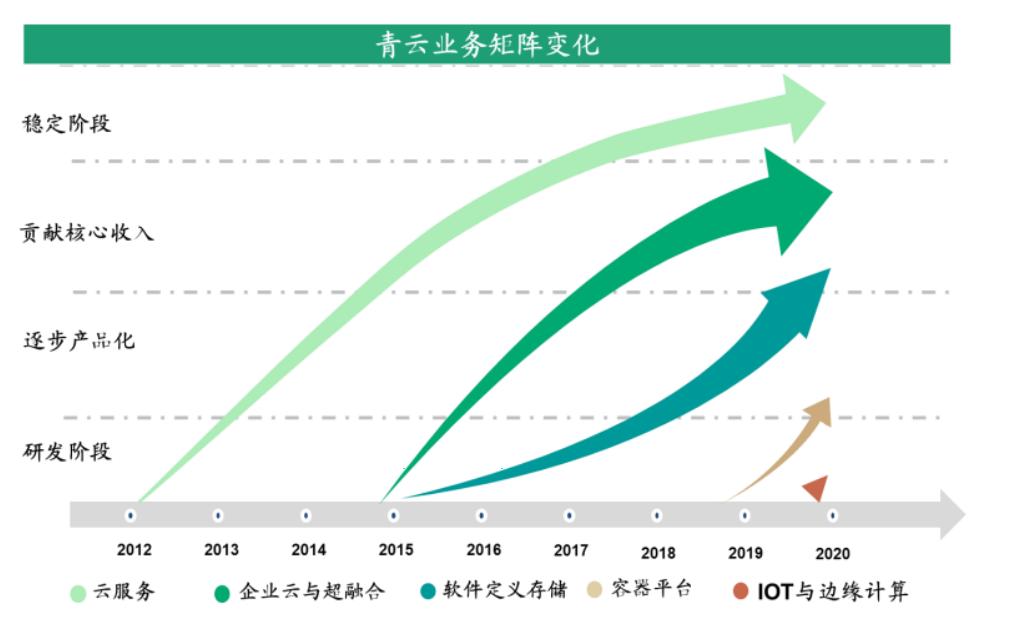 - 2017-2019 年:青云科技的云产品业务获得快速发展,容器平台、SD-WAN、统一多云管理平台等产品得到进一步完善。公司开始在混合、多云趋势下,利用统一技术体系、云服务及云产品,并结合 SD-WAN、统一多云管理平台等服务和产品提供混合云解决方案。