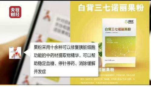 网友自称9年里被高血糖折磨的生不如死,自从认识XX老师,按照老师给的方子服务用,胰岛素都停用了。多次推荐老师,并且醒目标红了联系方式。和所谓的老师联系上后,老师简单询问病情后,就推荐了白背三七诺丽果粉,但其实这只是一款普通食品。