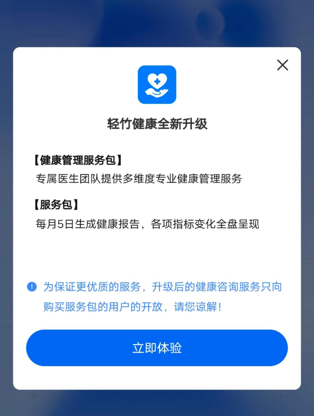 据悉,轻竹健康是百度灵医智惠一站式健康管理平台,集合了以上资讯、测量提醒、血糖血压记录、健康课堂和商城等多项服务。