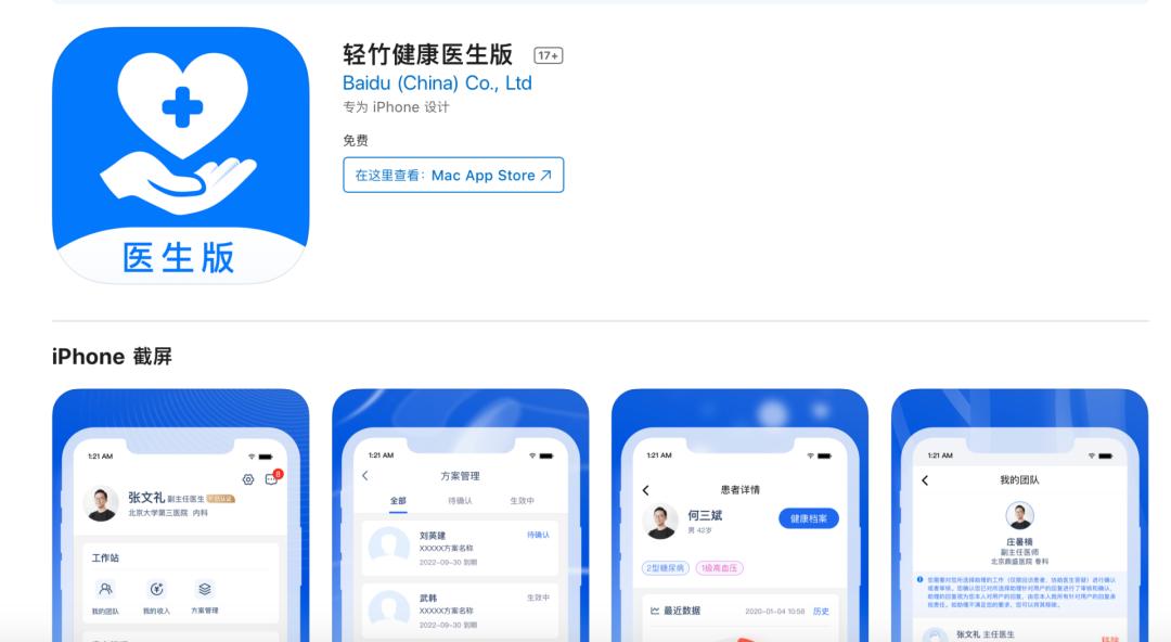 Tech星球独家获悉,百度于近日上线轻竹健康。