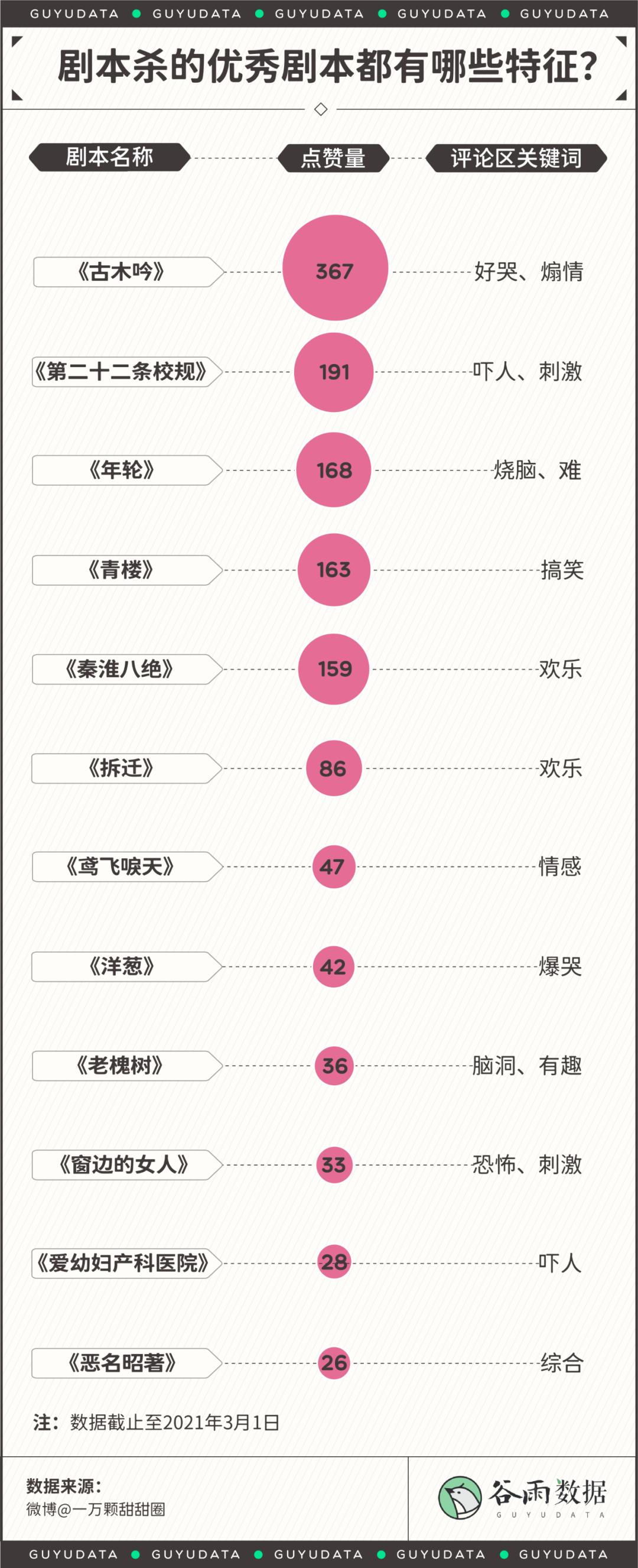 在微博“有啥好玩的剧本杀推荐吗?”下,评论点赞排名第一的《古木吟》,网友们的推荐理由是:“好哭,煽情”。