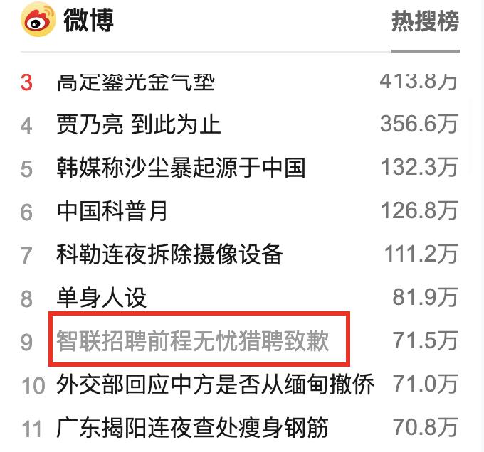 其中,热度最高的又是「简历泄露」,甚至一大早就把求职类 APP 的回应顶上了热搜: