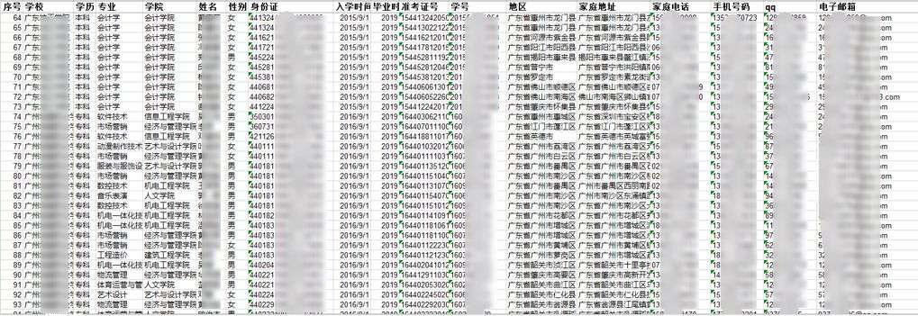 这份“格式”细致到每位学生的身份证号,家庭住址,个人联系方式和家庭联系方式,甚至包括入学时间,准考证号和学号!基本等同于学院收集的新生入学完整信息表。