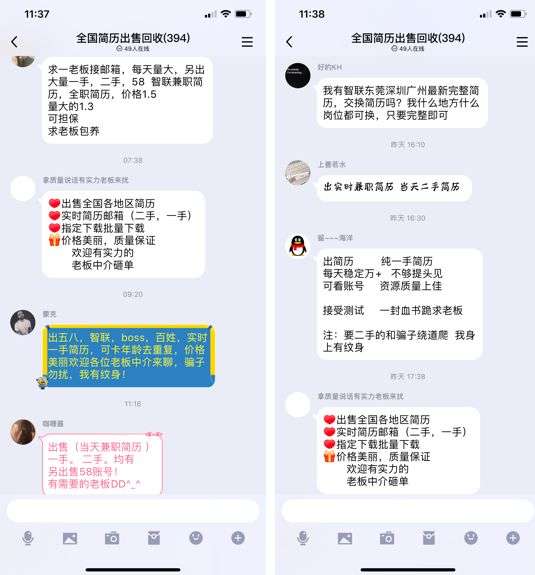 并且,简历也只是获取信息的其中一种方式,在 QQ 群里潜伏了一段时间后,我发现个人信息的交易超乎了我的想象。