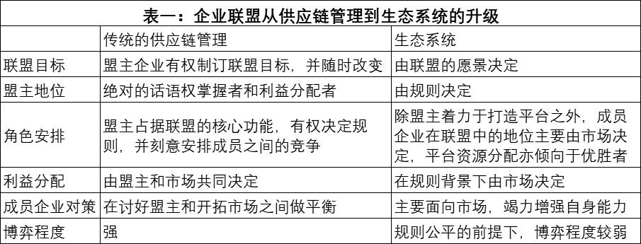 无论被称为“供应链管理”、“虚拟经营”、还是“商业生态系统”,运营这种商业体系的盟主企业,其经营范围已经超越了企业的边界,形成了一个由众多成员构成的企业联盟,联盟的成员企业通过某种形式的合作,共同为消费者提供商品和服务。