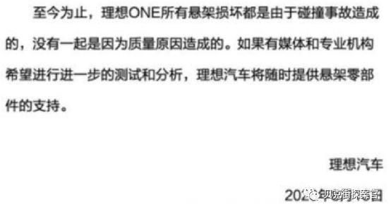2020年11月,理想官方称将会为理想ONE车主实行“硬件优化升级”改造,等于变相低调承认理想ONE的下摆臂球销有质量问题。但是这样的回应无异于糊弄消费者,几天后,理想不得不宣布,将召回共计10469辆存在断轴可能的理想ONE。