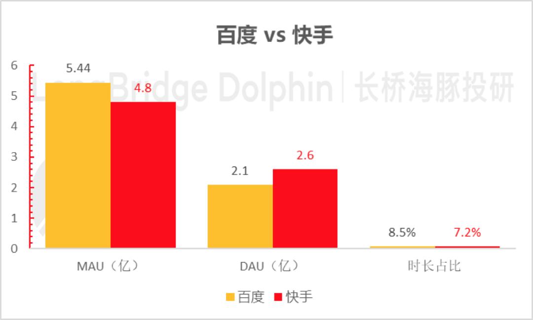 数据来源:公司财报,海豚整理(百度时长含爱奇艺,快手是基于公司年底估算值)