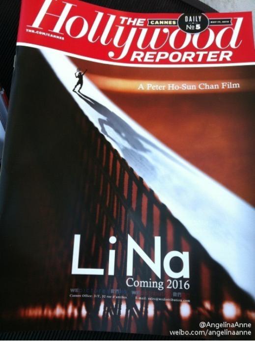 ▲ 《李娜: 我的人生》概念海报登上 2015 年 5 月 17 日《好莱坞报道》戛纳场刊的封面