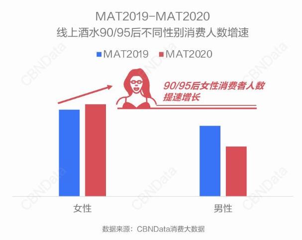 在「人」的方面:90/95 后逐渐成为酒水消费的主力军,消费能力不断上涨。CBNDATA 报告显示,90/95 后在酒水方面的消费人数和人均消费水平呈现增长趋势。同时女性酒水消费正在崛起,90/95 后女性消费者提速增长。