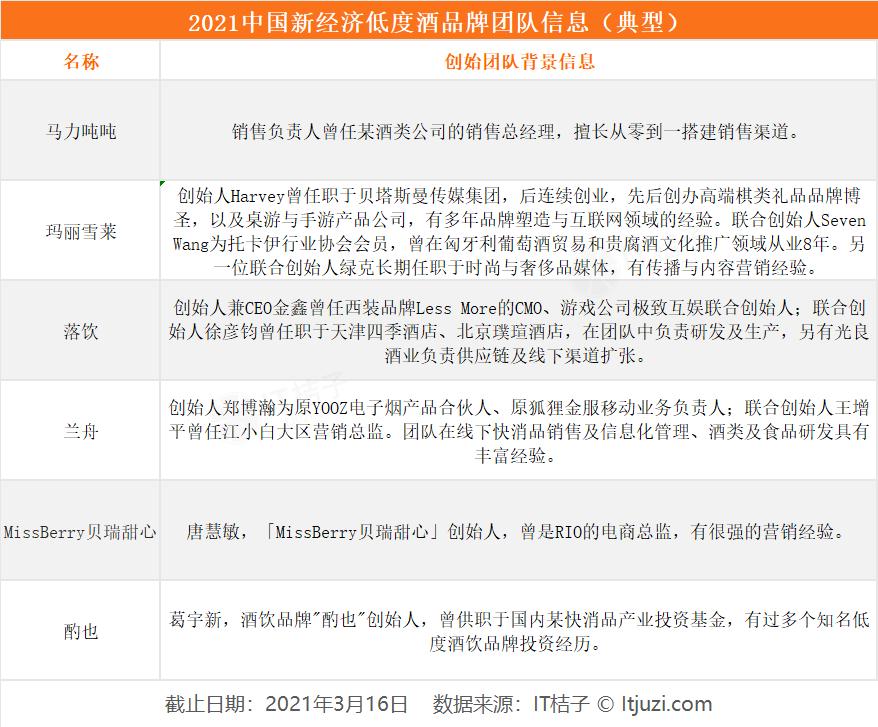 目前,我们搜索了已经获的融资的低度酒品牌创始团队信息发现,他们多数有扎实的酒业从业、营销、运营等经验。