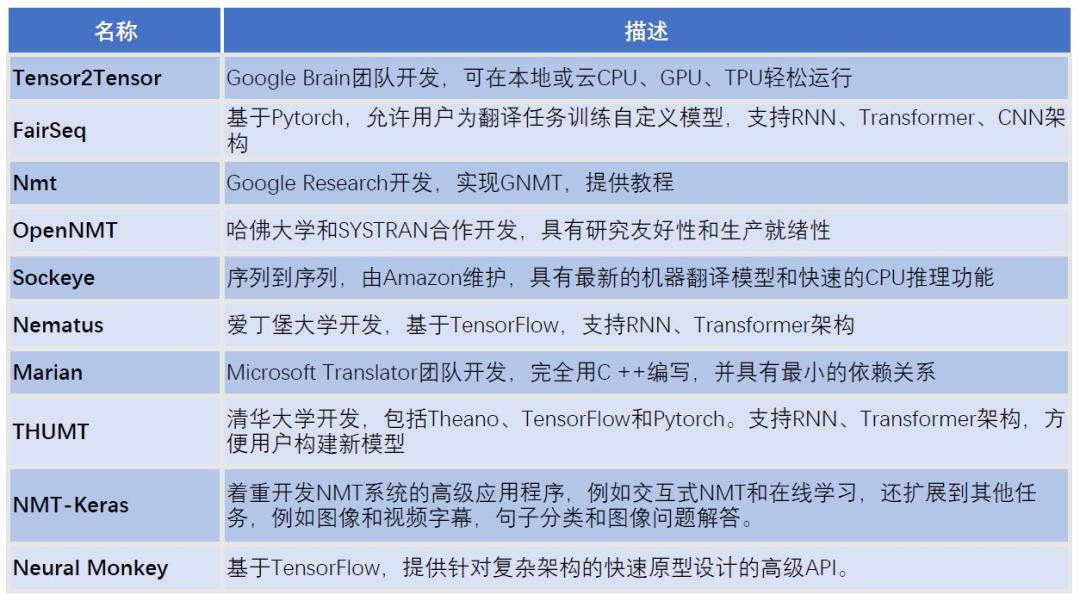 最后,文中还总结了当前流行的开源 NMT 工具,均可在 GitHub 直接获取。