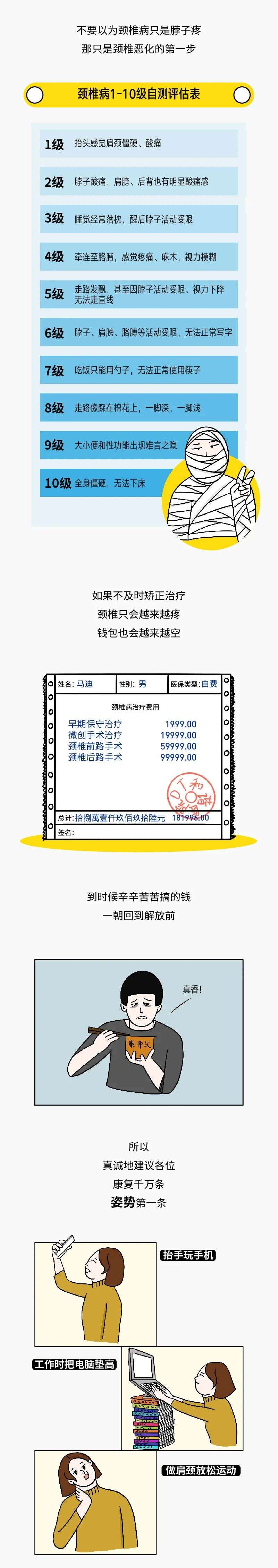 颈椎病10级测评表,你到哪级了?
