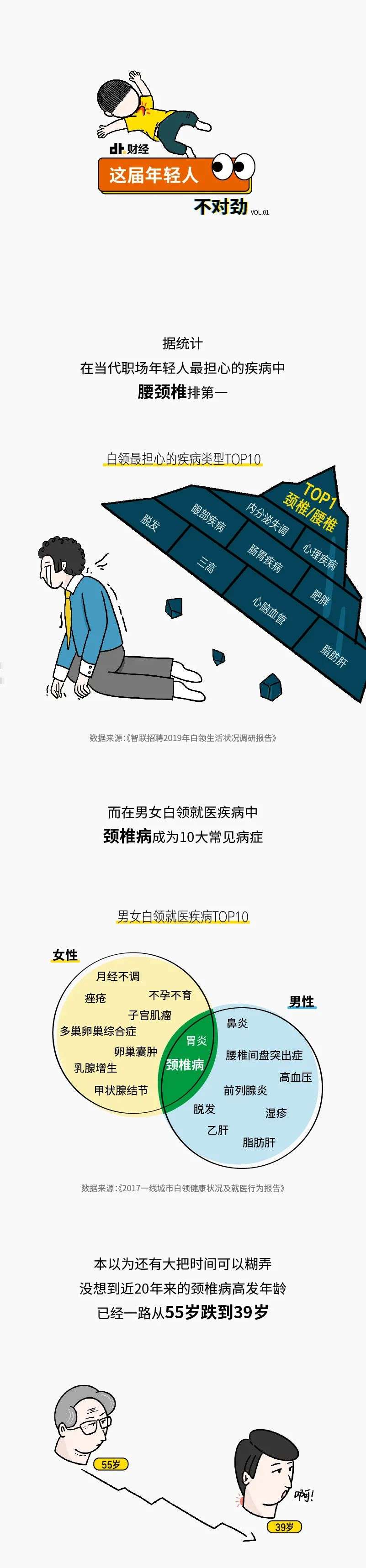 1. 长江日报《年轻人颈椎患病率已超中年人,高发年龄从55岁跌至39岁》