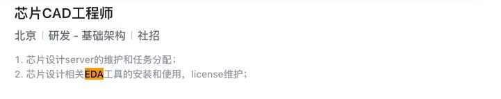 可以看到,这些职位集中在芯片设计上,其中,一份职位描述要求具有芯片设计服务器和电子设计自动(EDA)工具(用于设计高级芯片的软件)方面的经验的应聘者。