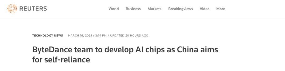 3月16日,路透社报道称,字节跳动正在自研云端AI芯片和Arm服务器芯片,但该计划仍处于早期阶段。