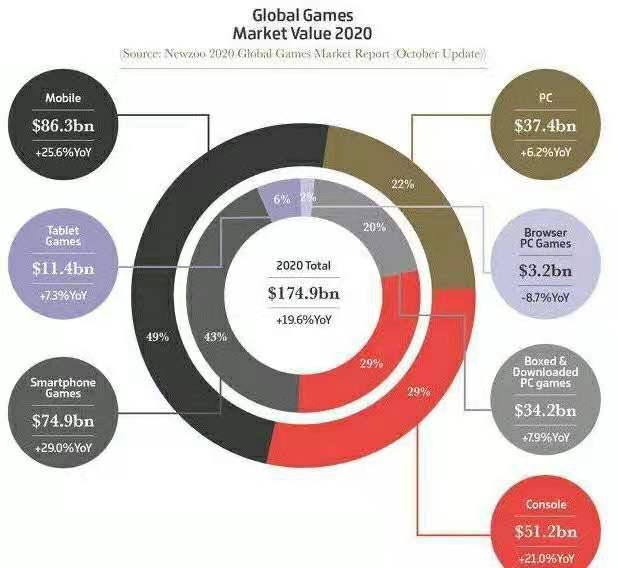 另一方面,根据GamesIndustry总结的2020年全球游戏市场价值报告,全球游戏市场总值达到1749亿美元,其中PC端游戏价值374亿美元,占比22%;主机游戏总值512亿美元,占比29%;移动端游戏则总值863亿美元,占比49%。需要显卡的PC、主机游戏行业比重正在变低,如果相关游戏爱好者无法以正常市场价格拿到游戏显卡,注意力很可能转移到其他爱好上。